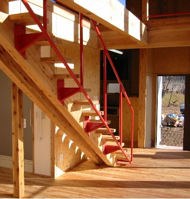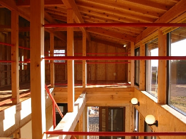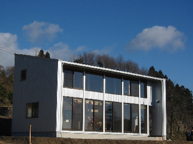 杉、ヒバ、黒松、檜など構造材は全て群馬県産材。さらには床材もすべて県産唐松材を使用した高気密高断熱仕様のバリアフリー住宅。外断熱工法を採用することで実現した坪40万円台の超ローコスト住宅。内部仕上げはほとんど構造体がそのまま仕上げ材となる自然素材仕上げ構法とし、暖かみのある木質系内装イメージが強調されている。外装は屋根材と同じ金属サイディングで仕上げられた、軽快でモダンな現代住宅。
