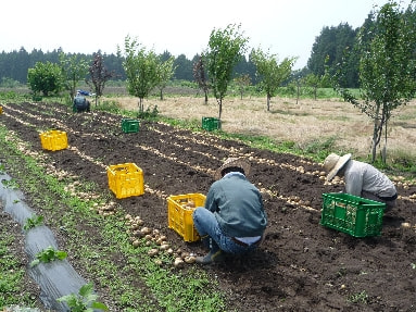赤城高原農場はアトリエの南に隣接する約1,900㎡ほどの平らな畑地。2/3ほどの土地には12種類48品目の果樹たちが育っています。残りのエリアには山独活 (ヤマウド)、イチゴ、ラズベリー、キュウイ、アスパラ、山椒 (サンショ)などがそれぞれに数㎡ずつゾーンをなして並んでいます。春と秋には季節の野菜たちが仲間入りします。