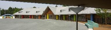 園舎は子供たちにとって無限の可能性を秘めた「おもちゃ箱」である。自然の風や光や緑と、建築を構成するエレメントたちとによって生成される、様々な「空間」から、子供たちは自分の生活の場(=遊びの場)を知覚し、自らの行動の領域を体感的に広げていく。それは周到に用意され、実は教師たちにはきちんと把握されているにもかかわらず、あくまで自由で、無限の可能性と発展性とを秘め、どこまでも明るく、底抜けに楽しい「生活の砦」として成立している。